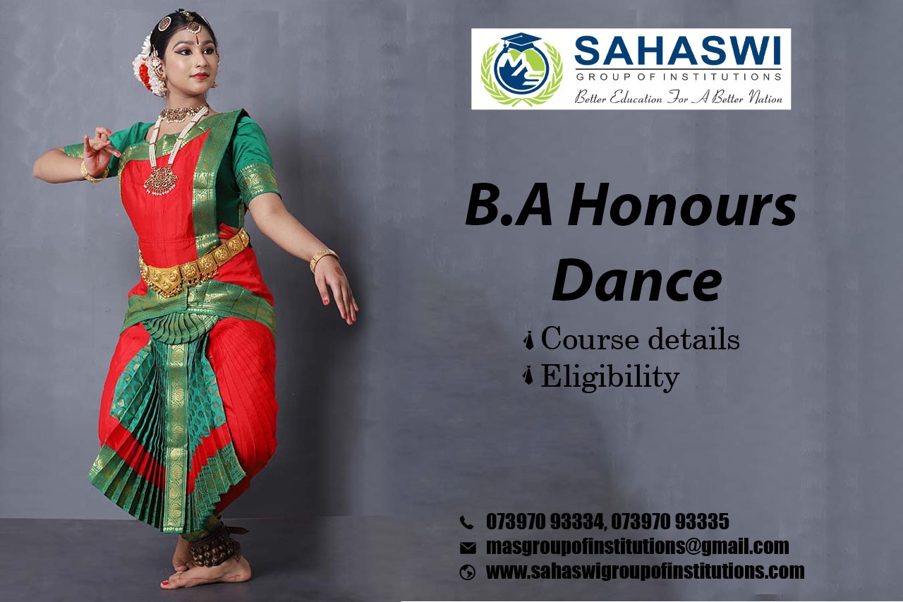 B.A Honours Dance/ B.A Honours Dance What is it about/ Scope of B.A Honours Dance/ Salary of B.A Honours Dance/ Importance of studying B.A Honours Dance/ B.A Honours Dance in distance education/ Benefits of taking B.A Honours Dance/ B.A Honours Dance distance education/ Eligibility for pursuing B.A Honours Dance/ Career opportunities for B.A Honours Dance graduate/Subject involved in B.A Honours Dance course. B.A Honours Dance is a full-time undergraduate Acting, Dance & Drama course of 3 years which is divided into six semesters of study. This B.A Honours Dance course focuses on developing the student's dance technique and knowledge of dance history, gaining embodied and theoretical experience of cultural forms, developing creative skills, and increasing their knowledge of anatomy. The eligibility criteria for pursuing B.A Honours Dance course is as follows: -This B.A Honours Dance candidate must have passed 10th, +2 in any stream or equivalent from a recognized board of education. -The B.A Honours Dance candidates should have a minimum aggregate score of 50% and 45% for SC/ST/OBC candidates at this level. -Students of B.A Honours Dance must have Dance as their elective subject in Class 12. BA in Dance degree program focuses on developing the dance technique, knowledge of dance history, gaining embodied and theoretical experience of cultural forms, developing creative skills, and increasing the knowledge of the anatomy of the students. The Bachelor of Arts in Dance course offers a very well-rounded education in dance technique, theory, choreography, and performance. Sahaswi Group of Institutions is the leading institute for distance and online education in Coimbatore. All the study materials, E-materials, ID cards, Syllabus, Hall tickets, and Exam Time tables will be provided by us. You can gain proper guidance from commencing your course and placement facility till the completion of your course. Here you can get amazing distance education programs from well-reputed universities in and around India.