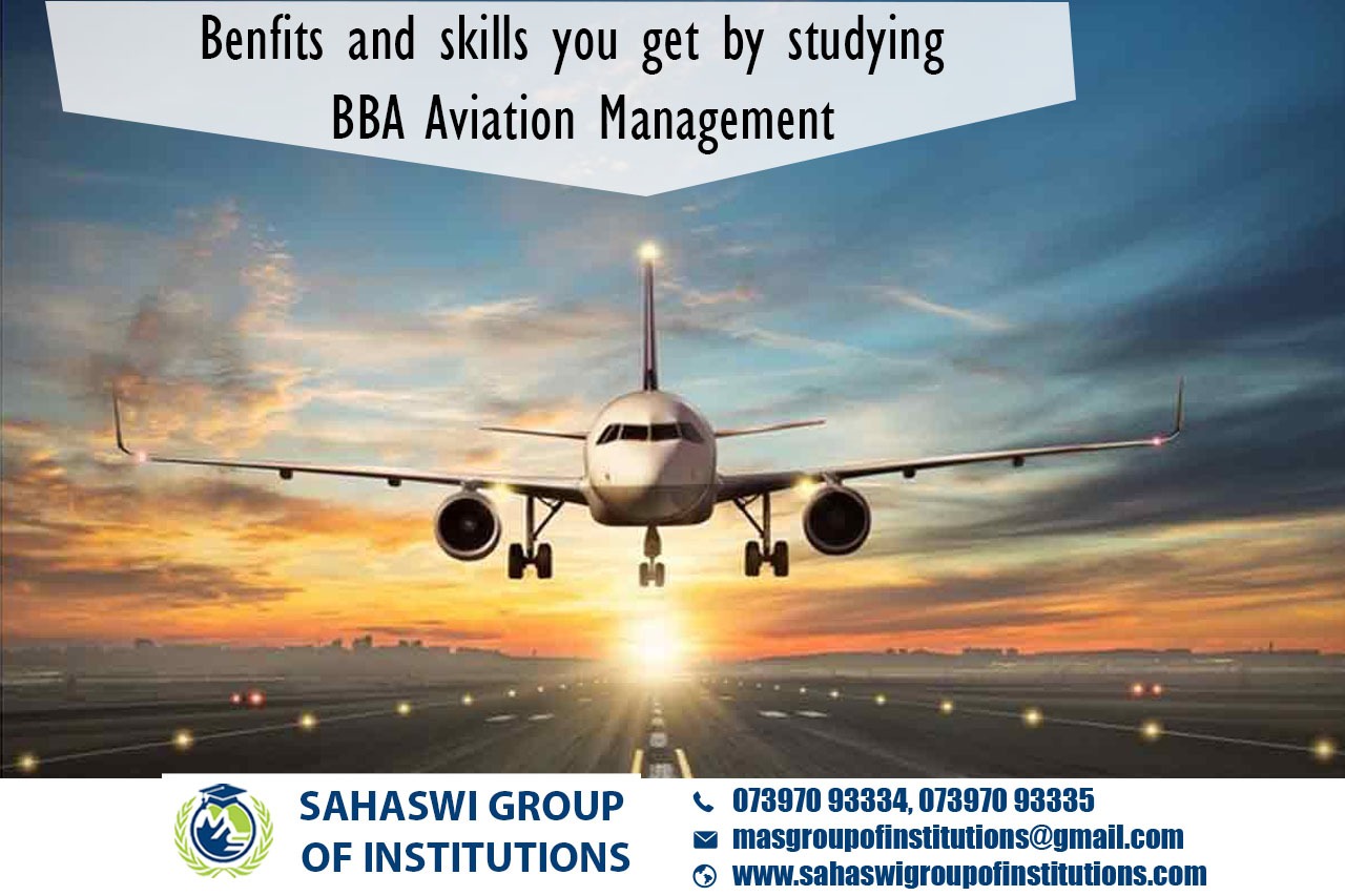 Benefits of studying BBA Aviation Management/BBA Aviation Management What is it about/ Scope of BBA Aviation Management/ Salary of BBA Aviation Management/ Importance of studying BBA Aviation Management/ Benefits of taking BBA Aviation Management / Eligibility for pursuing BBA Aviation Management/ Career opportunities for BBA Aviation Management /BBA Aviation Management details. BBA Aviation is a 3-year undergraduate course that deals with passenger forecasting, airport security, passenger forecasting, etc. BBA Aviation course covers numerous subjects like marketing, accounting, and human resources, and students learn about the fascinating world of airports and the aviation industry's workings. The management sector of aviation provides many job opportunities. Hence, there is a rise in employment and high demand for the aviation industry. BBA Aviation graduates are responsible for the betterment of the aviation sector by introducing smart technologies and improving efficiency. They have to manage and tackle the airport staff engaged in departments like security, the safety of passengers, cabin crew, etc. Following are the skills that make one the best aviation manager: → Management Skills → Excellent Communication Skills → Supervisory Skills → Information about Federal Air Regulations and Aviation Industry Guidelines → Time Management Skills → Financial Management Skills → Travel Management Skills → Problem-solving Skills → Interpersonal Skills → Communication Skills → Presentation Skills The course is beneficial to provide skills for employment within an airport management role and also for further education such as Post Graduate Diploma and M.B.A.This course will equip students with the knowledge and professionalism required by the Air Transport industry. The students have many job opportunities in airlines in India like pilots, flight engineers, aircraft engineers, chefs, crew, flight attendants, and airport services. Here at Sahaswi Group of Institutions, you can find all types of UG, PG, Diploma, PG Diploma, and certificate programs in distance and online education modes. Enrolling in distance or online education courses via Sahaswi Group of Institutions, you can get UGC-approved degree certificates along with A+ grade mark sheets from your enrolled University. Also, we provide the students with exclusive online courses, live sessions, and other educational benefits.